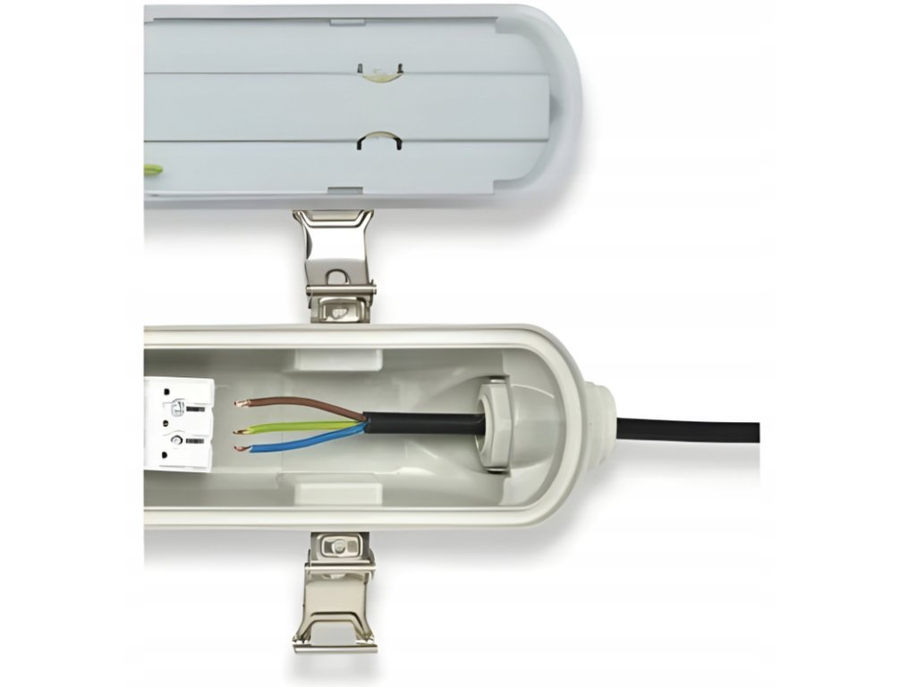 ✅ Technické údajeVýrobce:Philips / Signify Série / model:Ledinaire WT065C Moc:22 W Světelný tok:2400 lm Světelná účinnost:109 lm/W Teplota barvy:4000 K (neutrální bílá) Koncentrace indexu (CRI):>80 Úhel paprsku:110° Napájení:220–240 V střídavého proudu, 50/60 Hz Účiník:0,9 Stupeň ochrany:IP65 Mechanická odolnost:IK08 Materiál pouzdra a stínidla:polykarbonát Barva pouzdra:šedá Rozměry:1207 × 71 × 74 mm Váhy:cca 1,1 kg Provozní teplota:od -20 °C do +40 °C Životnost:až 50 000 hodin (L70) Instalace:povrchově montované / zavěšené Zdroj světla:Integrovaná LED Zatemnění:nedostatek ✨Sada 2 kusů! |