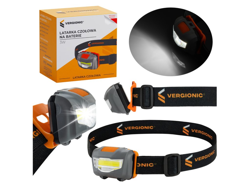 3W LED čelovka napájená z baterie