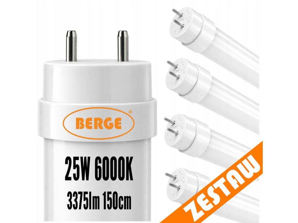 4x LED trubice 150cm - T8 25W - 3375lm - 6500K - studená bílá