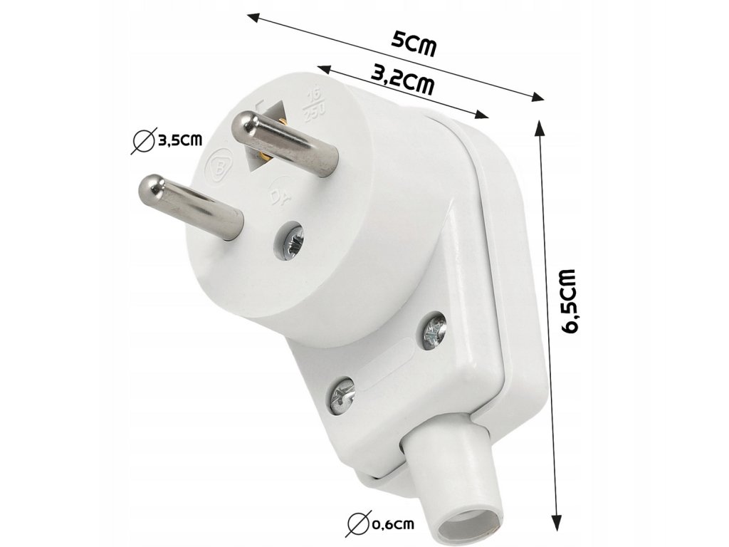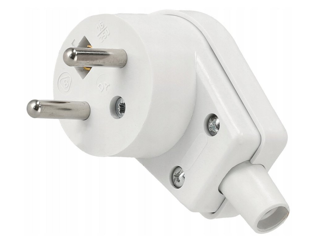 Bílá úhlová zástrčka s uzemněním 250V - 16A 3x2,5mm2