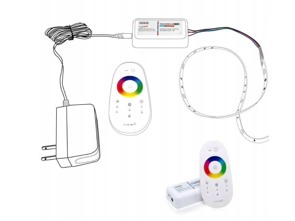 ✅ Dane techniczneTyp urządzenia: sterownik RGB + pilot dotykowy Obsługiwane taśmy: LED RGB 4-pin Napięcie zasilania: DC 12–24V Maksymalna moc: 108W przy 12V 216W przy 24V Łączność: RF 2.4G (radiowa) Zasięg pilota: do 25 m Sposób sterowania: dotykowy pierścień kolorów + przyciski funkcyjne Wejście zasilania: listwa zaciskowa lub gniazdo DC 2,1 mm Wymiary sterownika: 45 × 85 × 25 mm Certyfikaty: CE, RoHS |