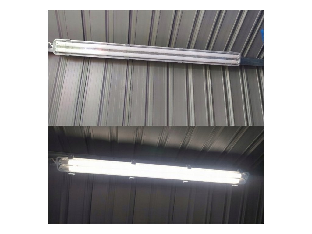 ✅ Technické údajeTyp: hermetické provedení Délka:156,5 cm Šířka:11,5 cm Montážní výška/hloubka:8,6 cm / 86 mm Zdroj světla:2 × zářivka T8 LED Vlákno:G13 Jmenovitý výkon:48 W Světelný tok:3600 lm Teplota barev:6500 K (studená bílá) Úhel paprsku:120° Napájecí napětí:230 V Stupeň ochrany:IP65 Třída ochrany:II. Třída energetické účinnosti:G (A+ – stará klasifikace) Spotřeba energie:48 kWh / 1000 h Materiál pouzdra:tlustý, těžký plech + reflektor Barva pouzdra:šedá Tvar:obdélníkový Hmotnost s obalem:6 kg ✨ Součástí je svítidlo a 2 zářivky! |