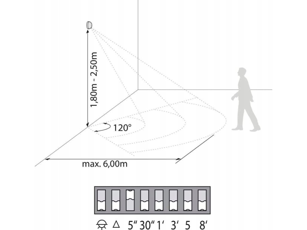✔️ TIME (doba svícení): Pomocí DIP přepínačů můžete nastavit dobu, po kterou má osvětlení zůstat zapnuté po detekci pohybu: 5 s / 30 s / 1 min / 3 min / 5 min / 8 min . Díky tomu lze senzor přizpůsobit různým aplikacím – kratší časy pro chodby, delší časy pro vchody a garáže. | |
