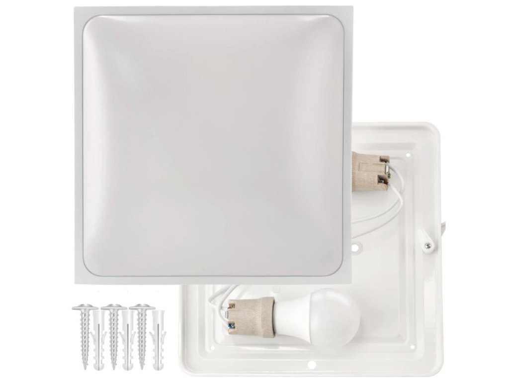 LED stropní svítidlo 2xE27 čtvercové bílé + 2x E27 10W neutrální bílá žárovka