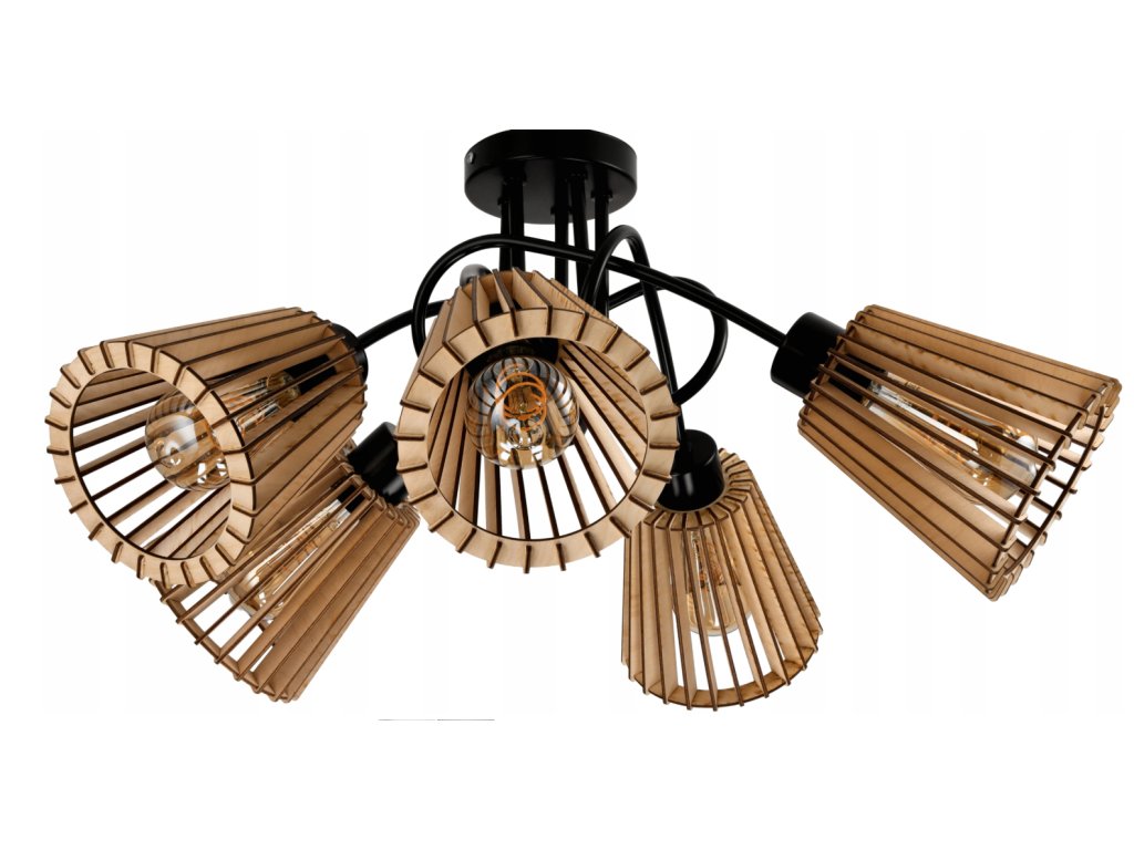 LED stropní svítidlo LOFT 5XE27 dřevené kuželové