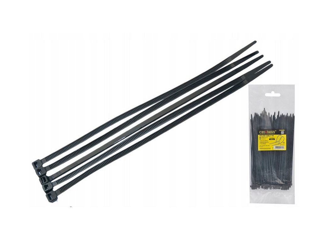 Nylonová stahovací páska 7,6 x 400 mm - černá, 100 kusů je silné a spolehlivé řešení pro organizaci kabelů, upevňovací komponenty a aplikace v průmyslu, automobilovém průmyslu a stavebnictví.