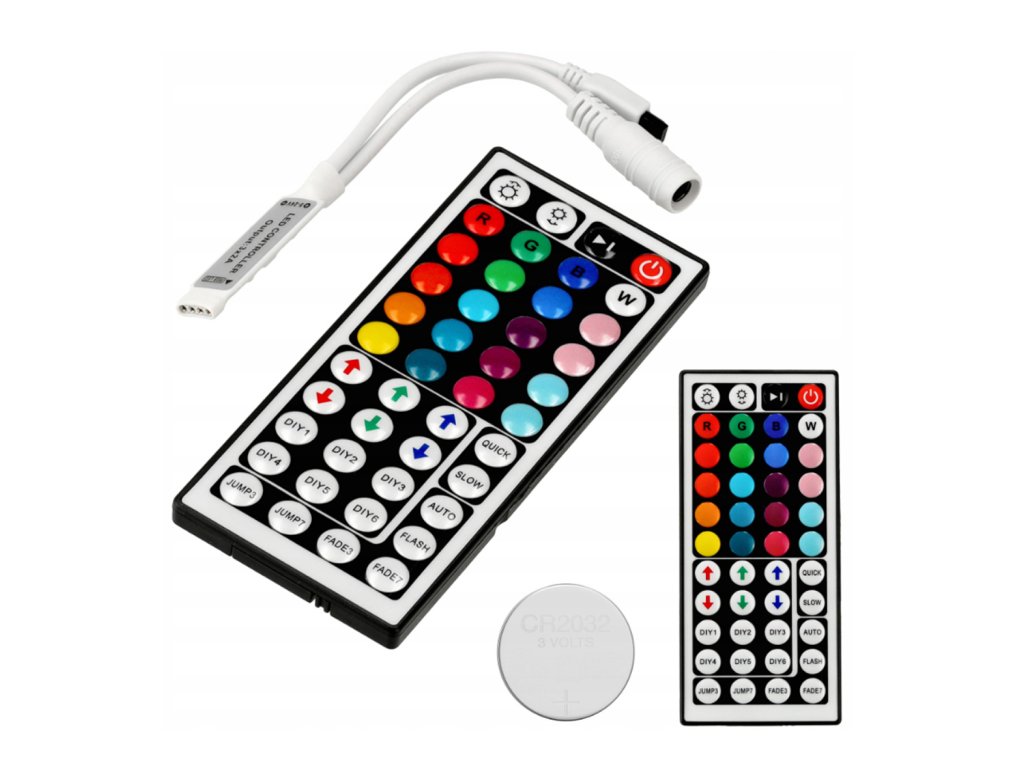 ✨ CENOVÝ HIT ✨Ovladač + dálkové ovládání IR44 pro 12-24V RGB LED pásky | Dálkové ovládání barev a efektů Spolehlivý a kompaktní RGB LED ovladač s infračerveným dálkovým ovládáním. Ideální pro vytvoření atmosférického osvětlení ve vaší domácnosti, kanceláři nebo obchodě. Umožňuje pohodlně ovládat barvy, jas a světelné efekty, aniž byste je museli fyzicky přepínat. ✔️ Hlavní vlastnosti produktu:✅ Dálkové ovládání IR44 se 44 tlačítky– široký výběr funkcí a barev ✅ Infračervené dálkové ovládání– dosah až 2–3 metry ✅ Podpora 20 základních barev + dynamické režimy ✅ Světelné efektyBlesk, stroboskop, prolínání, plynulé přepínání, automatický režim ✅ Možnost plynulého stmívání a rozjasňování ✅ Funkce DIY– naprogramujte si vlastní nastavení barev ✅ Kompaktní konstrukce přijímače– snadná instalace v těsných prostorech | |