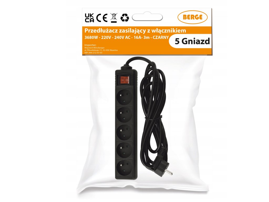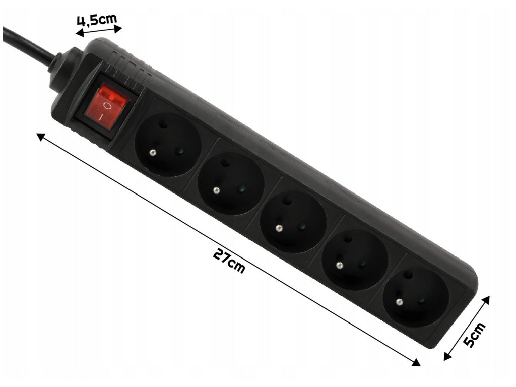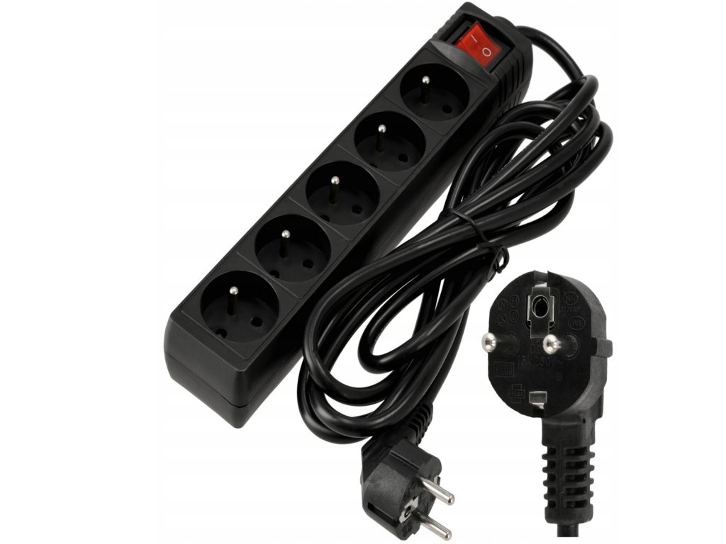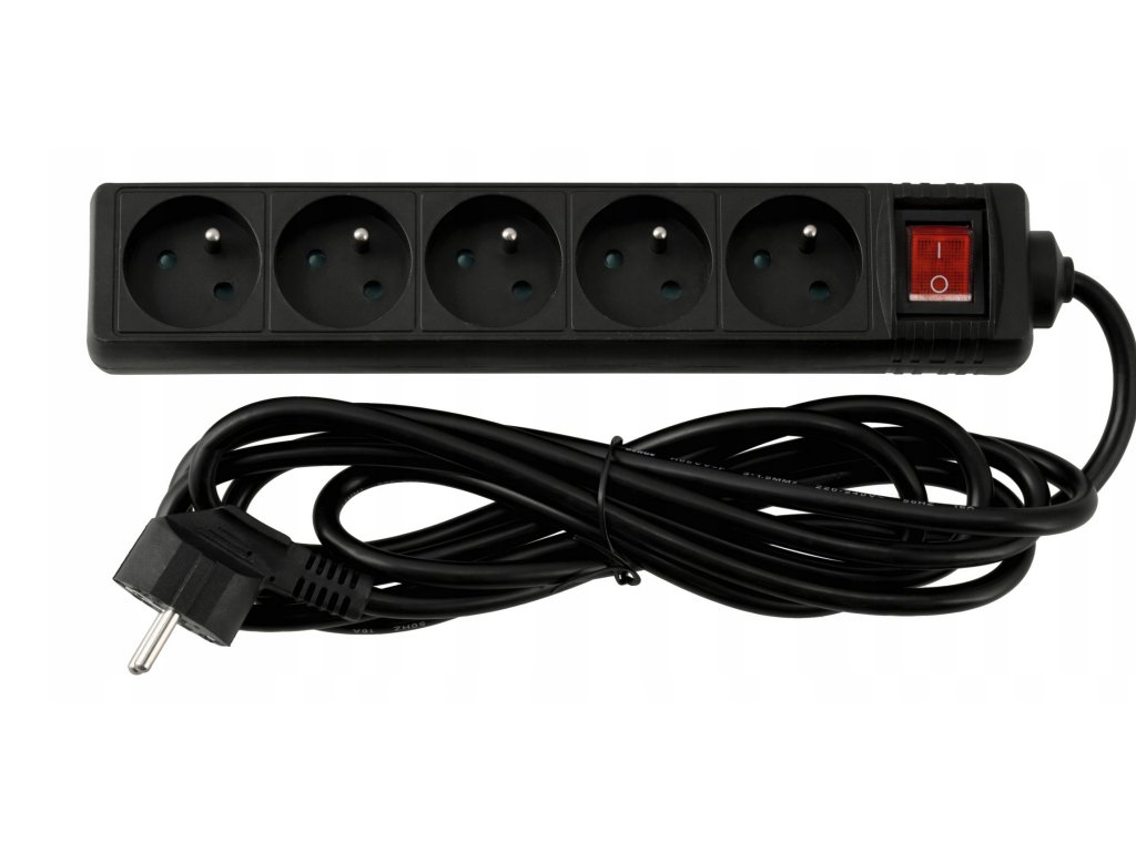 - Model: Prodlužovací kabel s 5 zásuvkami, 3 m