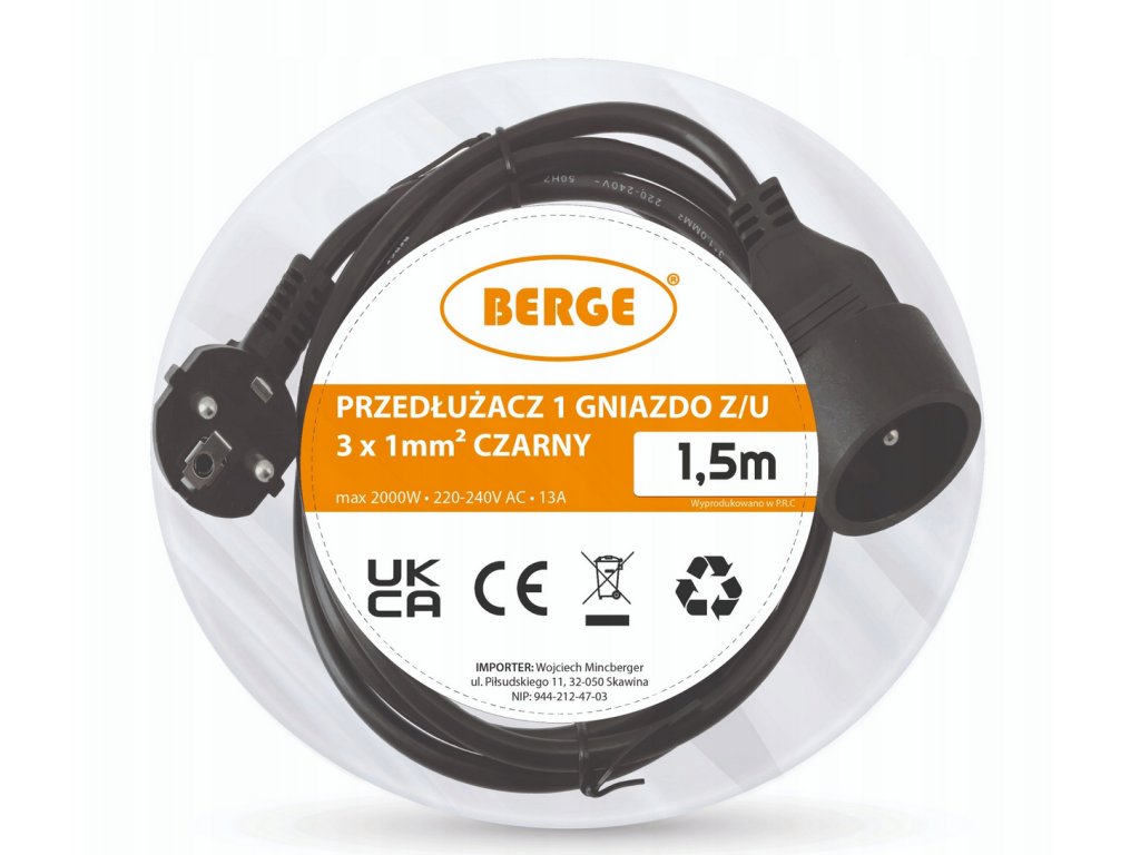 - Model: Prodlužovací kabel s 1 zásuvkou, 1,5 m