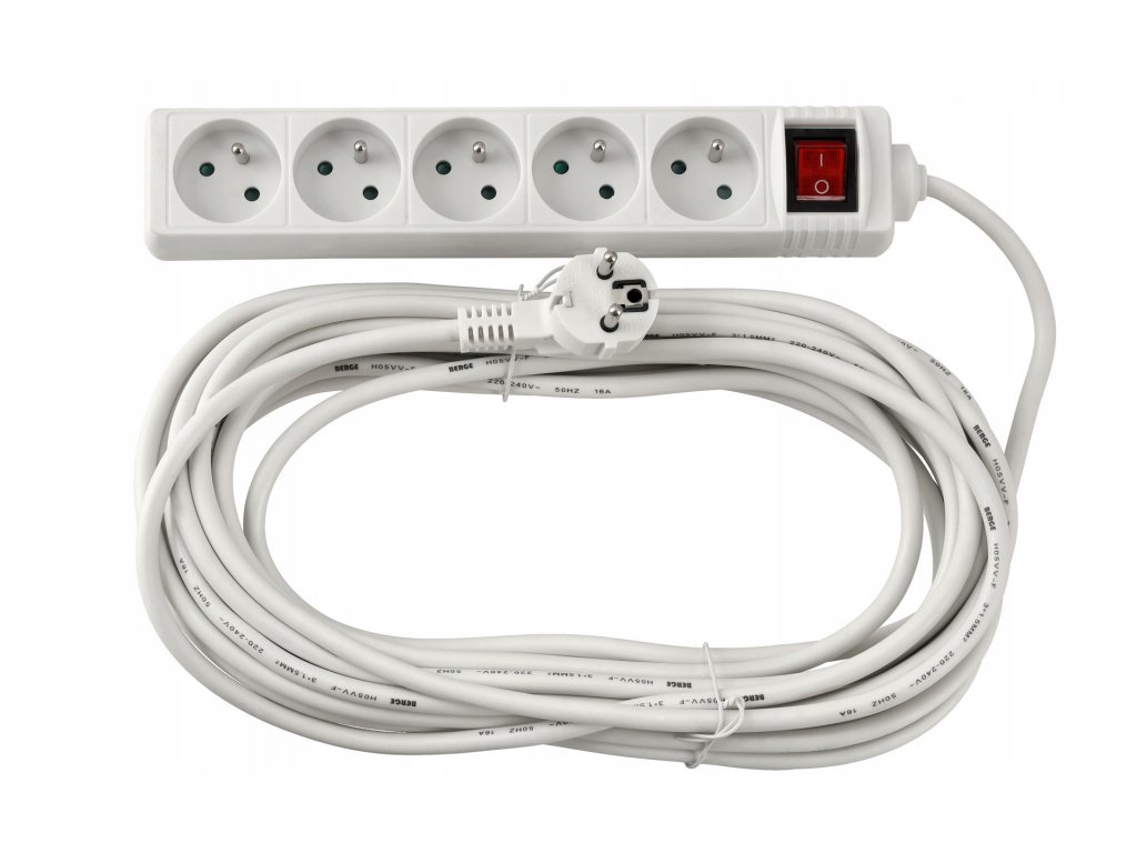 - Model: Prodlužovací kabel s 5 zásuvkami, 10 m