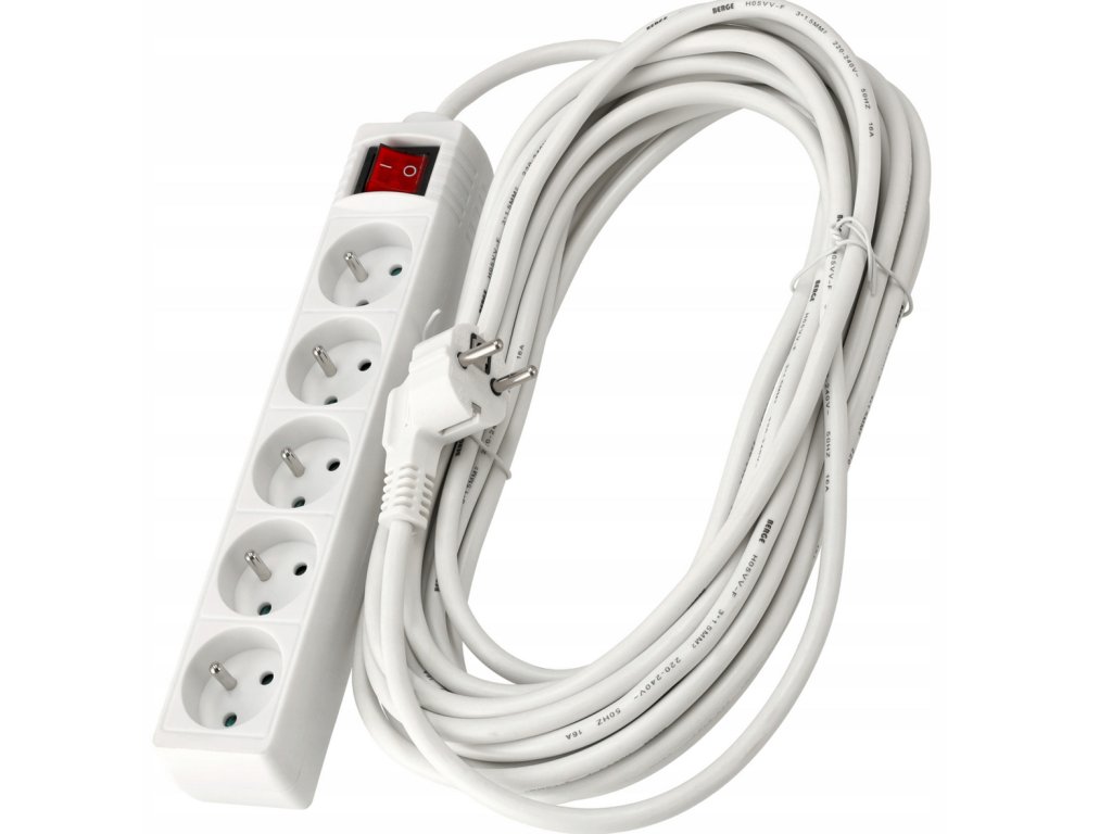 Prodlužovací kabel 10m s uzemněním, 5 zásuvek - bílý, 3*1,5 mm2, 3680 W