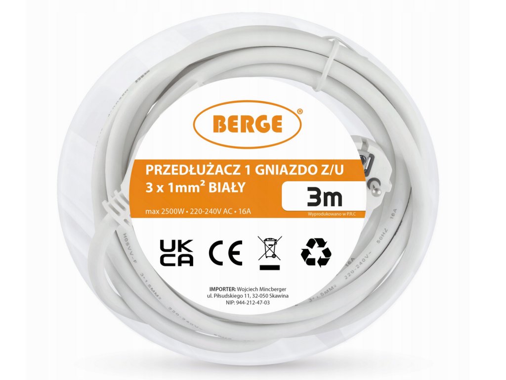 - Model: Prodlužovací kabel s 1 zásuvkou, 3 m