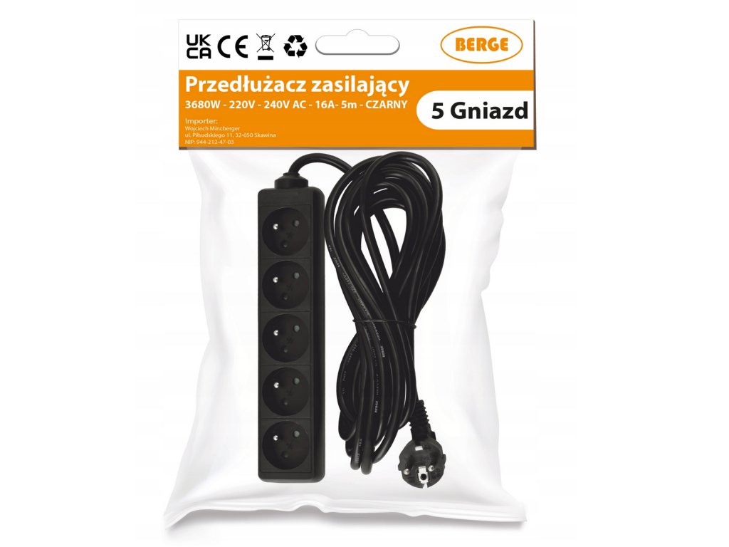 - Model: Prodlužovací kabel 5 zásuvek 5 m