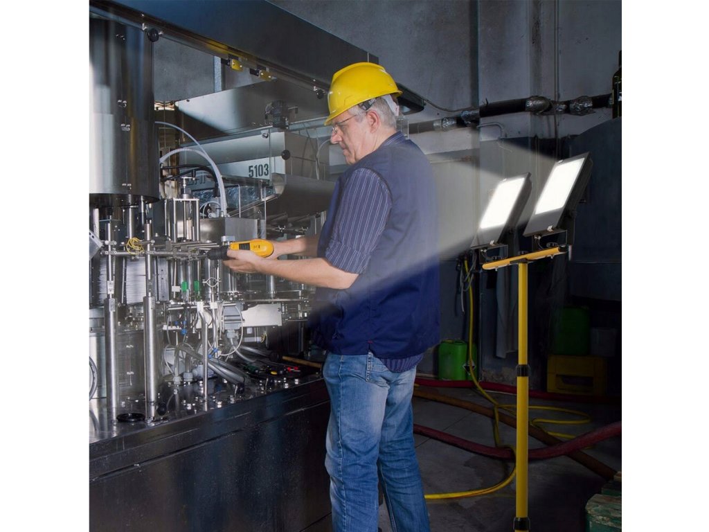 - Stativ je vyroben z oceli, což zajišťuje vysokou odolnost a stabilitu během provozu. Možnost nastavení výšky až do 162 cm umožňuje přizpůsobit osvětlení různým potřebám a podmínkám na staveništi.