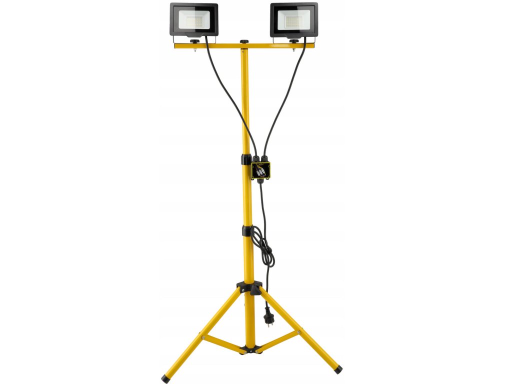 Kompletní sada - dva 2x50W LED reflektory s výkonem 7000 lm každý a studenou barvou 6000K a pevný, skládací konstrukční stativ s nastavením výšky až 162 cm. Sada je vybavena dlouhým 2m kabelem s 230V zástrčkou s uzemněním a hermetickou krabicí, takže je připravena k okamžitému připojení a provozu.