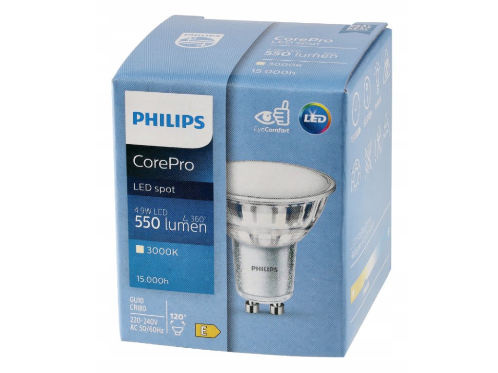 ✅ Seznamte se s produktem:Philips CorePro LEDspot GU10 550lmToto energeticky úsporné LED bodové světlo je navrženo jako přímá náhrada za tradiční halogenové žárovky s paticí GU10. Vyzařuje příjemné teplé světlo (3000K), které rovnoměrně osvětluje prostor díky širokému vyzařovacímu úhlu 120°. | |