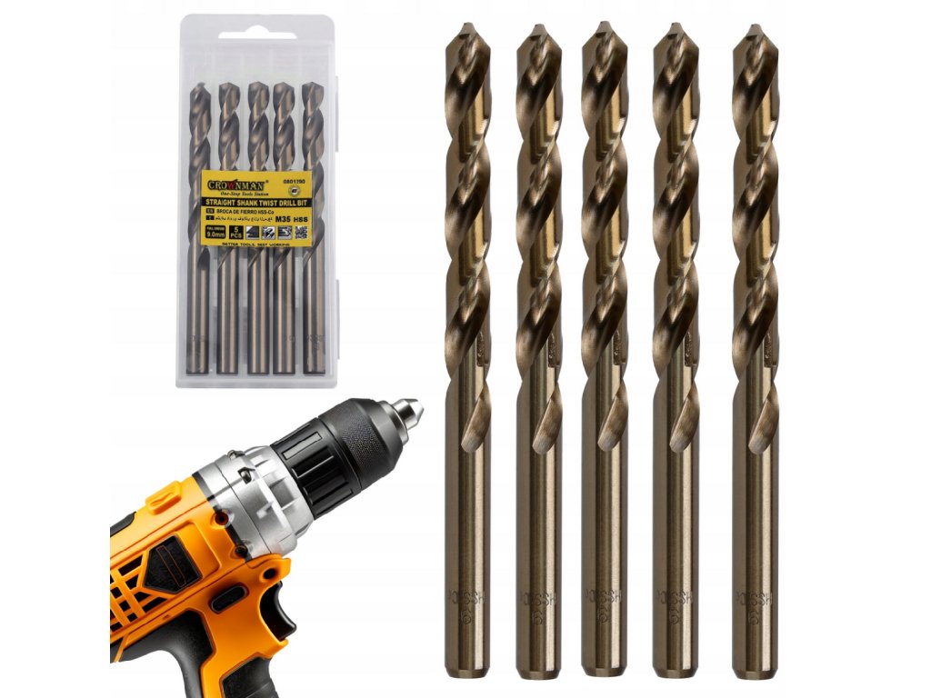 5x Sada vrtáků M35 HSS 5% Co Cobalt 9 mm – Přesné a odolné vrtáky pro vrtání tvrdých kovů. Ideální pro práci s nerezovou ocelí, litinou a dalšími náročnými materiály.