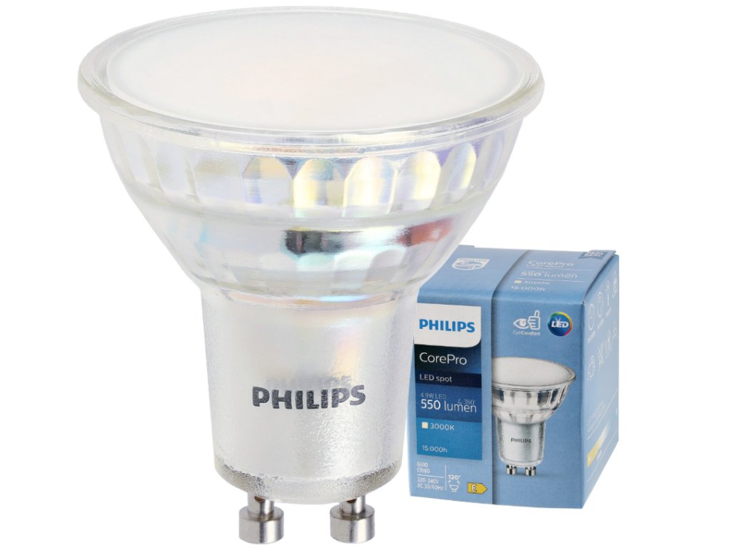 Technické parametry:LED technologieCorePro Zacházet sGU10 Světlá barva3000K (teplá bílá) Světelný tok: 550 lm Účinnost: 112 lm/W Spotřeba energie: 4,9 W Úhel paprsku: 120° Index CRI: ≥80 Trvanlivost15 000 hodin Čas zahájení<0,5 s Frekvence50–60 Hz Účiník: 0,5 Rozměry: Ø50 mm x 54 mm Váhy45 g ZatemněníNE Energetická třídaE Shoda s RoHSAno Spotřeba energie: 5 kWh/1000h ✨Sada 5 kusů! |