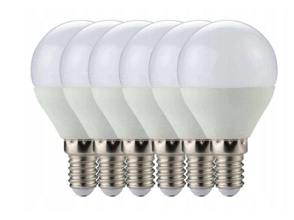 Sada 6 LED žárovek E14 7W G45 600lm 4500K - neutrální bílá