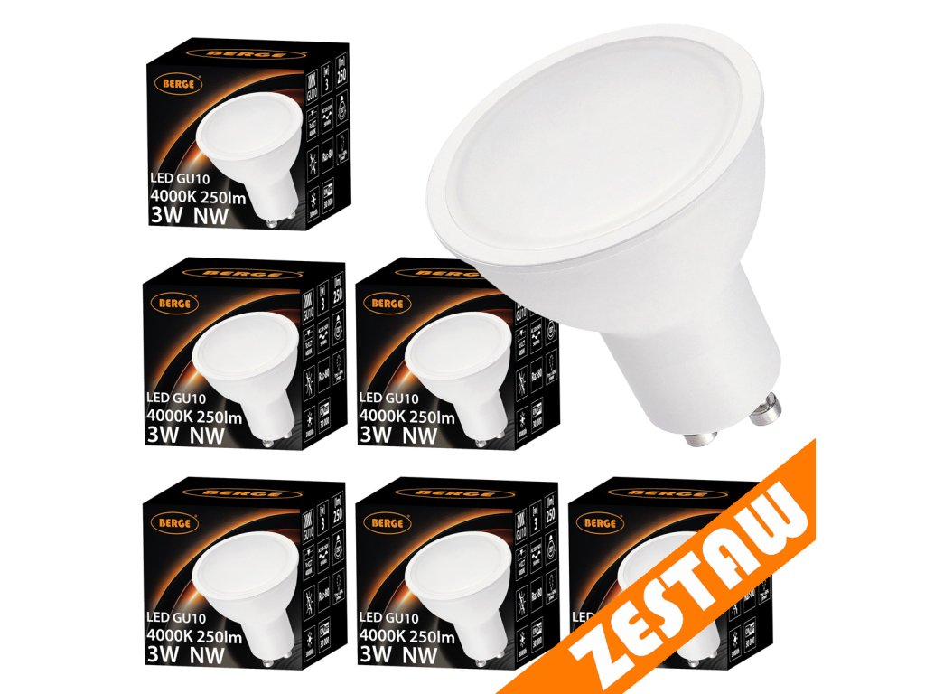 Sada 6 LED žárovek GU10 3W 250lm 4000K - neutrální bílá