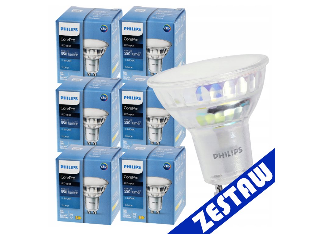 SADA 6 LED žárovek PHILIPS GU10 4,9W 550lm - studená bílá