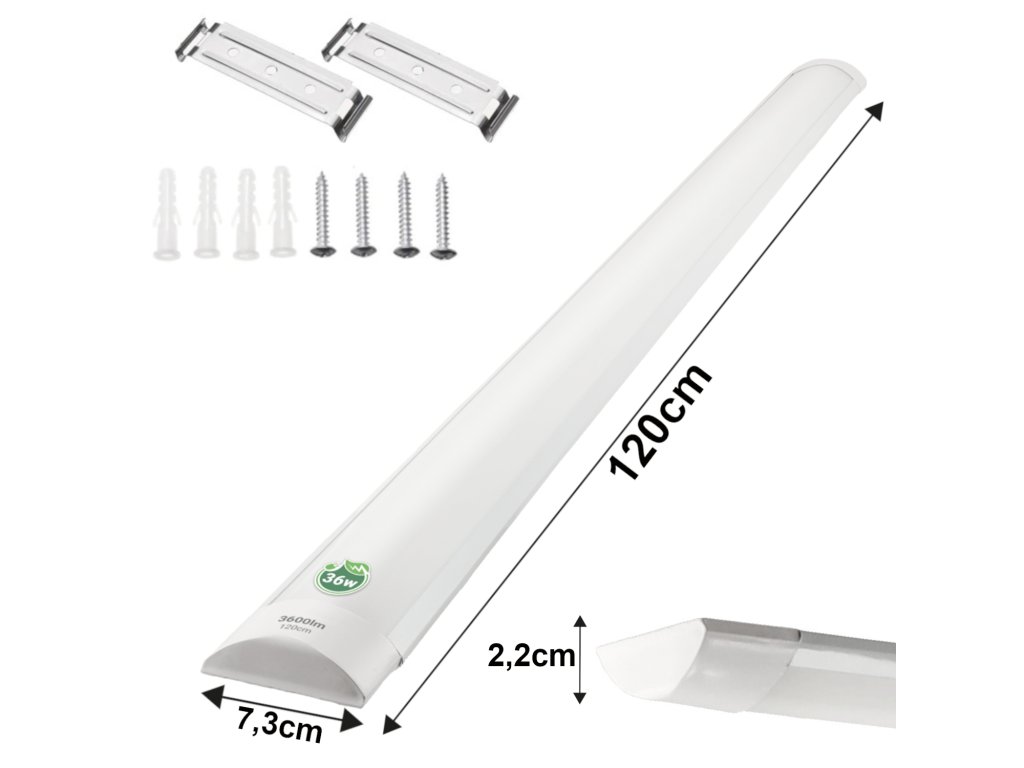 Technické údaje:Materiál: ocel + PC Napětí: 230V Příkon: 36W Barva: 4000K neutrální barva Světelný tok: 2880 lm (+/- 5 %) Třída ochrany: IP20 Stínidlo: mléčné Napájení: jednostranné Certifikáty: CE, RoHS CRI: ≥80 PF: >0,9 ⭐️Montážní konzole zdarma!⭐️Sada 8! |