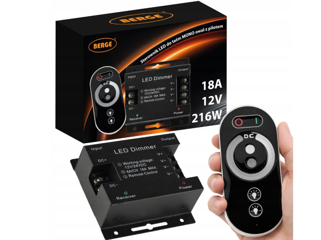 ✔️ Technické údaje ovladačeTyp:MONO LED stmívač/ovladač Model:18A 216W Napájecí napětí:12V DC / 24V DC Maximální zatěžovací výkon: 216 W při 12 V (nižší proud při 24 V – vyšší účinnost instalace) Rozsah nastavení:1–100 % Řízení:2,4 GHz RF dotykové dálkové ovládání Dosah dálkového ovládání:až 20 m Paměť nastavení:ano Napájení dálkového ovladače:3 x AAA baterie (nejsou součástí balení) | |