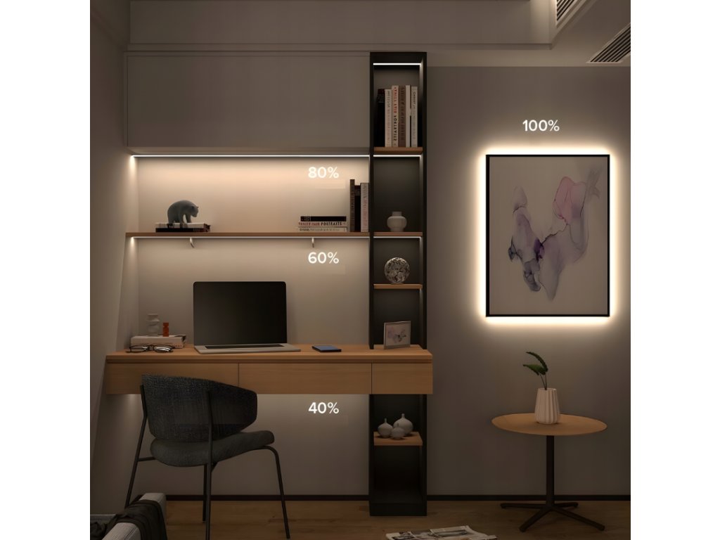 ⭐ Funkce stmívání – světlo přizpůsobené vašim potřebámOvladač s dálkovým ovládáním, který je součástí sady, umožňuje:plynulé nastavení jasu v rozsahu 1–100 %, což umožňuje přesně přizpůsobit intenzitu světla aktuálním potřebám a podmínkám v místnosti. Díky funkci stmívání může stejné osvětlení fungovat jakosilné pracovní světloCojemné, atmosférické osvětleníNastavení se pohodlně provádí pomocí dálkového ovládání, bez nutnosti přibližovat se k regulátoru. Možnost nastavení jasu zvyšujepohodlí při používání, umožňuje vám vytvořit v místnosti tu správnou atmosféru a dává vám plnou kontrolu nad osvětlením – přesně tak, jak se vám líbí. | |