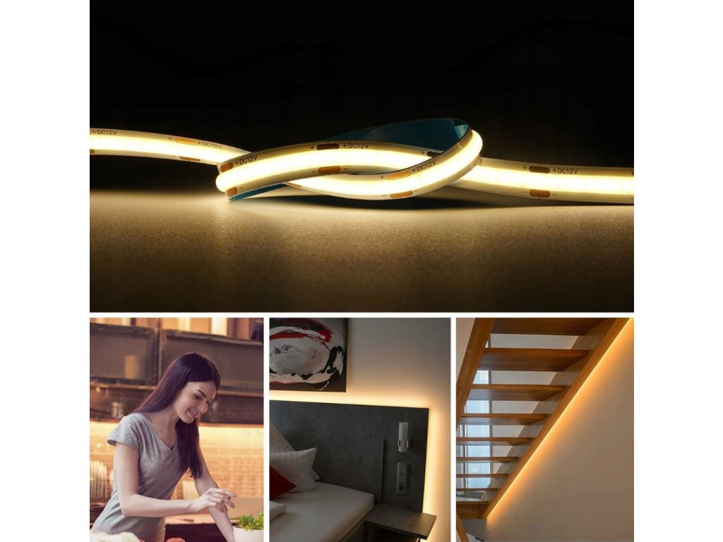❓ Často kladené otázky – Často kladené otázky1. Lze pásku ztlumit? Ano, sada obsahuje manuální stmívač LED, který umožňuje plynulé nastavení jasu. 2. Svítí páska místy? Ne. Technologie COB poskytuje rovnoměrný, nepřetržitý světelný paprsek. 3. Je sada připravena k použití? Ano. Jednoduše připojte pásek ke stmívači a poté k napájení. 4. Mohu zkrátit LED pásek? Ano, pásku lze rozdělit na určených místech (přibližně každých 3,5 cm). 5. Je sada vhodná pro venkovní použití? Ne. Součásti mají stupeň krytí IP20 a jsou určeny pro vnitřní použití. | |