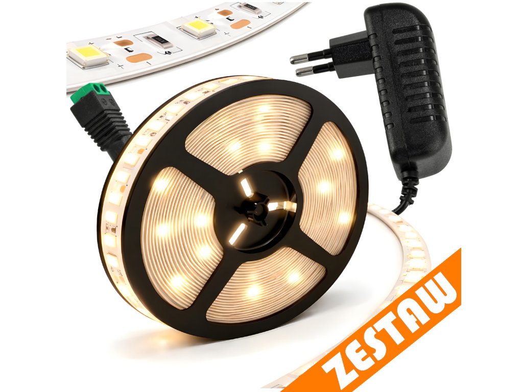✨ Zahrnuto ✨✔️ SMD 2835 LED pásek 24W – 5 m ✔️ Napájecí zdroj do zásuvky 12V 24W ✔️ 2pinový dvouvodičový kabel | |