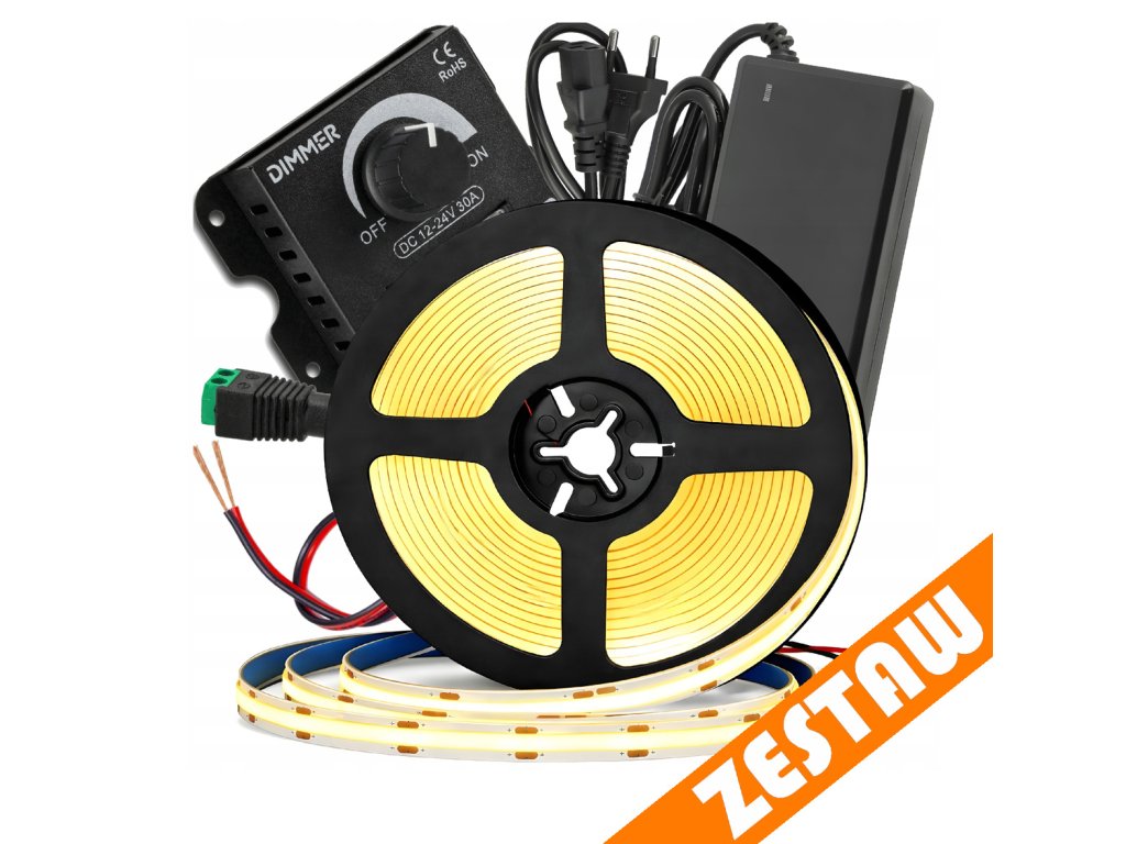 Sada neonové COB LED pásky 12V 5m 4000K 60W - zdroj + ovladač