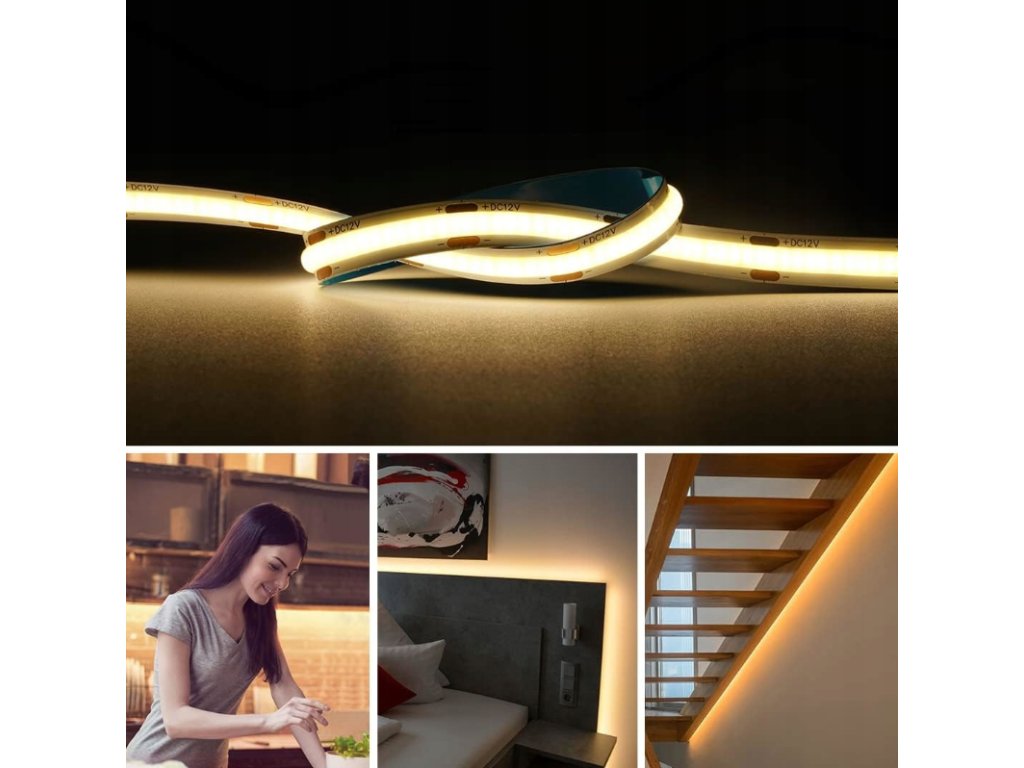 ❓ Často kladené otázky – Často kladené otázky1. Lze pásku ztlumit? Ano, sada obsahuje manuální stmívač LED, který umožňuje plynulé nastavení jasu. 2. Svítí páska místy? Ne. Technologie COB poskytuje rovnoměrný, nepřetržitý světelný paprsek. 3. Je sada připravena k použití? Ano. Jednoduše připojte pásek ke stmívači a poté k napájení. 4. Mohu zkrátit LED pásek? Ano, pásku lze rozdělit na určených místech (přibližně každých 3,5 cm). 5. Je sada vhodná pro venkovní použití? Ne. Součásti mají stupeň krytí IP20 a jsou určeny pro vnitřní použití. |
