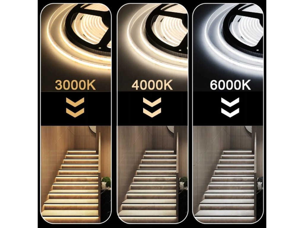⭐ Technické údaje LED pásku:Model:COB LED pásek NEUTRÁLNÍ 60W 5M Materiál:Bílá dvojitá deska plošných spojů s uspořádanými diodami Napájecí napětí:12V stejnosměrného proudu Výstupní výkon 1m:~12 W (celkem 60 W) Úhel paprsku:120° Třída těsnosti:IP20 Počet diod na metr:250 Možnost sdílení:každých 3,5 cm, má samolepicí pásku Velikost:výška 2,3 mm / šířka 8 mm / délka 5 m ⭐Další příslušenství: