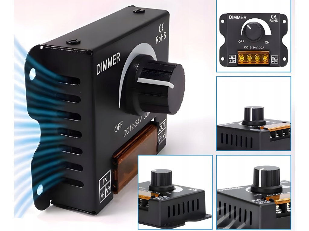 ⭐ Specifikace ovladače LED:Typ zařízení: manuální stmívač LED Vstupní napětí:DC 12–24 V Maximální proud:30A Výstupní výkon:360 W (12 V) / 720 W (24 V) Rozsah stmívání:0–100 % (kapalina) Ovládání:PWM (modulace šířky impulsů) Podporované pásky:jednobarevná LED Materiál pouzdra:kov Rozměry:84 × 62 × 20 mm Provozní teplota:-20 °C až +60 °C Stupeň ochrany:IP20(pro interní použití) Instalace: kabelová, šroubové svorky |
