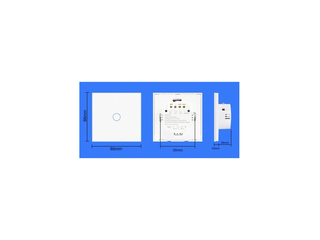 Dotykový spínač s externím skleněným panelem je moderní zařízení, které pracuje s klasickými světelnými zdroji a LED diodami. Spínač má přední panel vyrobený ze skla, což dále prodlouží jeho životnost. Nelze použít jako schodišťový typ.
