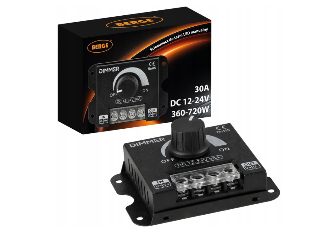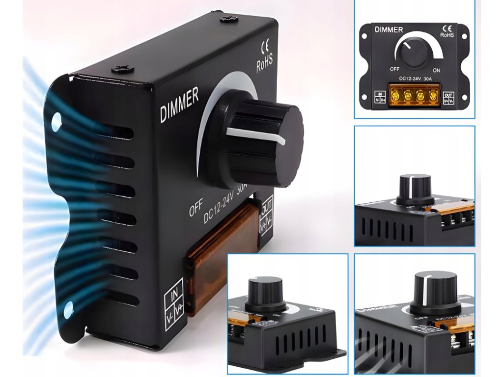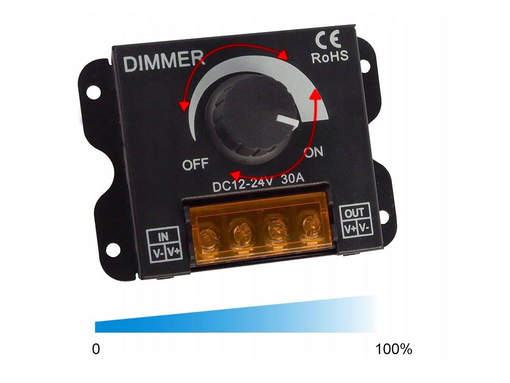 ✨ Hit Cenowy ✨Manualny ściemniacz LED DC 12–24V / 30A to wydajne i niezawodne rozwiązanie do regulacji jasności taśm LED jednokolorowych. Obsługuje instalacje aż do 720W, zapewniając płynne ściemnianie bez migotania i stabilną pracę nawet przy dużych obciążeniach. ✔️ Główne cechy produktu✅ Szeroki zakres napięcia 12–24V DC – kompatybilny z najpopularniejszymi taśmami LED niskonapięciowymi. ✅ Wysoka wydajność prądowa do 30A – możliwość obsługi długich odcinków taśm LED bez spadków mocy. ✅ Moc do 360W (12V) / 720W (24V) – idealny do większych instalacji oświetleniowych. ✅ Płynne ściemnianie 0–100% – precyzyjna regulacja jasności za pomocą pokrętła (potencjometr). ✅ Sterowanie PWM – stabilne światło bez migotania, bezpieczne dla diod LED. ✅ Obudowa metalowa – skuteczne odprowadzanie ciepła i wysoka trwałość. ✅ Prosty montaż śrubowy – szybkie i pewne podłączenie przewodów zasilania oraz taśmy LED. | |