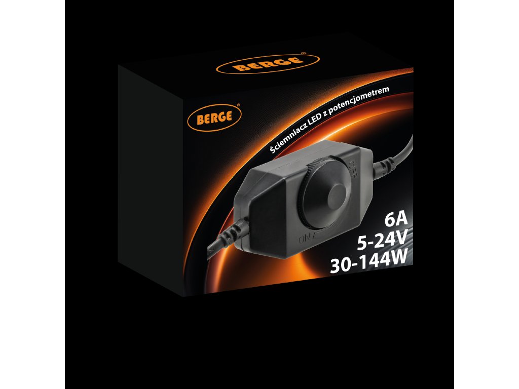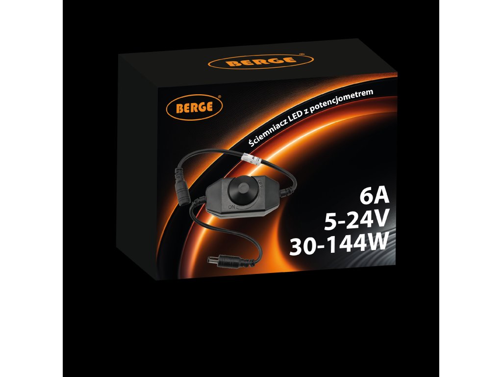 ⚙️ Dane techniczneTyp: ściemniacz LED analogowy z potencjometrem Napięcie zasilania: 5–24V DC Maksymalny prąd wyjściowy: 6A Maksymalna moc: 30W przy 5V 72W przy 12V 144W przy 24V Obsługiwane źródła światła: taśmy LED jednokolorowe Typ regulacji: PWM – płynna regulacja jasności Zakres regulacji: 0–100% Montaż: natynkowy / w zabudowie Certyfikaty: CE, RoHS Podłączenie: wejście: gniazdo DC 2,1 mm (żeńskie) wyjście: wtyk DC 2,1 mm (męski)