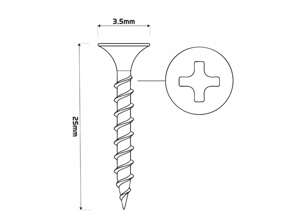 Vruty do dřeva a sádrokartonu Crownman 3,5×25 mm PH2 – černé, fosfátované, 100 ks. Toto vysoce kvalitní montážní příslušenství je určeno pro sádrokarton a dřevěné konstrukce. Kalená ocel a fosfátovaný povlak zajišťují odolnost, snadnou instalaci a odolnost proti korozi. ✔️ Hlavní vlastnosti produktu✅ Určeno pro sádrokarton – ideální pro připevnění sádrokartonu k ocelovým a dřevěným profilům. ✅ Kalená uhlíková ocel 1022A – odolnost a odolnost proti poškození. ✅ Fosfátový nátěr (černý) – chrání před korozí a zlepšuje přilnavost omítek a tmelů. ✅ Tepelně zpracované – zvýšená tvrdost a dlouhá životnost. ✅ Objímka PH2 – bezpečné uchycení bitu, rychlá a bezproblémová instalace. ✅ Ostrý hrot a závit – snadné zašroubování bez nutnosti vrtání otvorů. | |