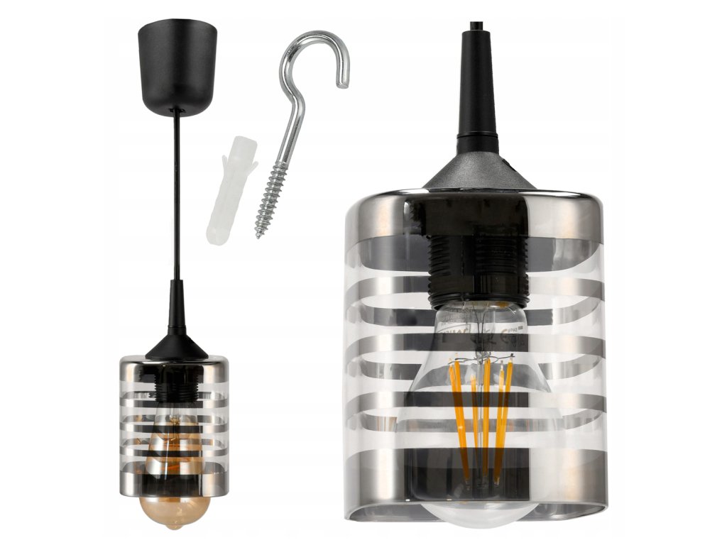 Závěsné stropní svítidlo / lustr LED E27, nastavitelné 0–100 cm, skleněné stínidlo